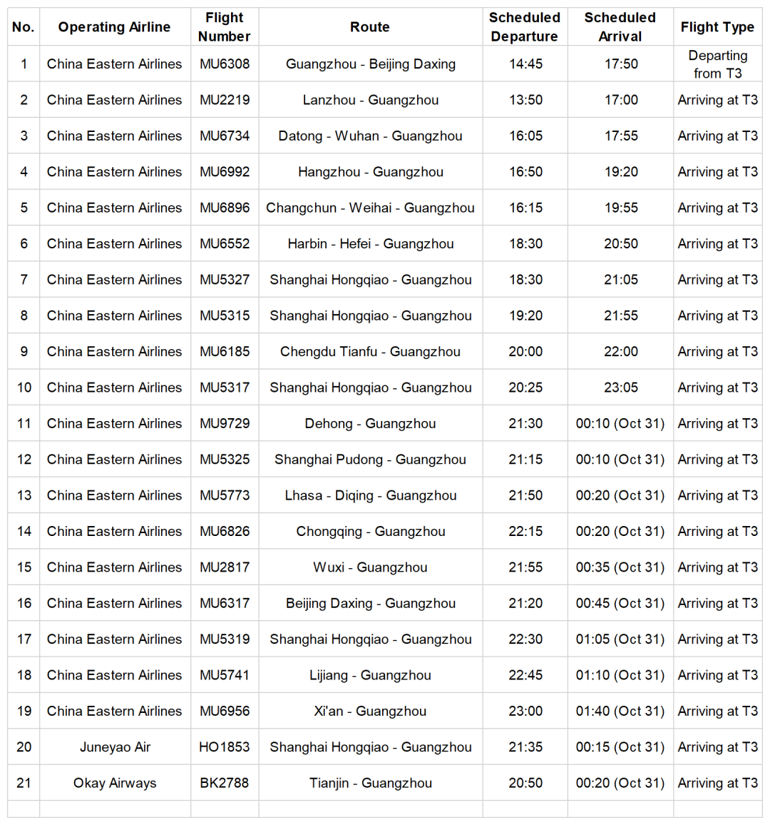 Starting October 30, all long-distance Airport Express bus routes will add a stop at T3. For detailed schedules, check the official "Baiyun Airport Express (白云机场空港快线)" WeChat account.