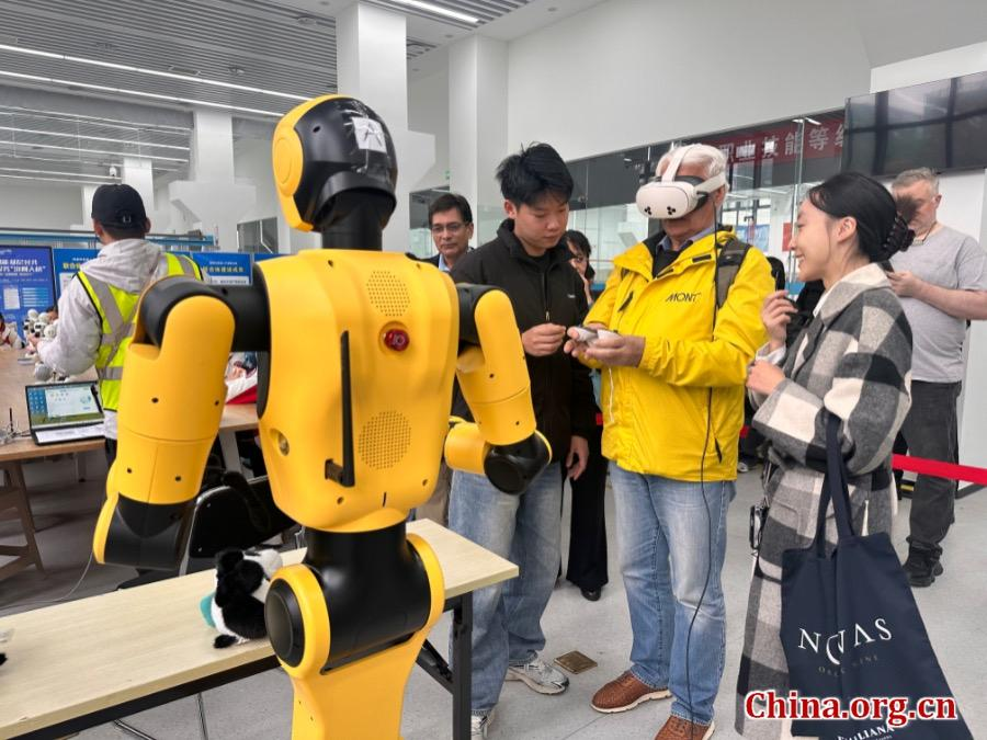 A foreign expert operating a robot at the Chengdu Robot Innovation Center in Chengdu, Sichuan province, Nov. 26, 2025. [Photo by Yang Chuanli/China.org.cn]
