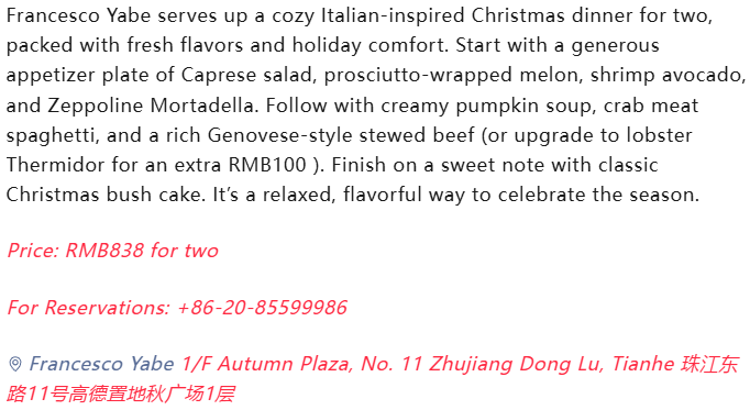Home /Discover/Dining / Francesco Yabe Christmas Set Dinner