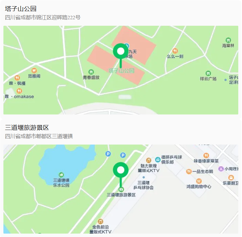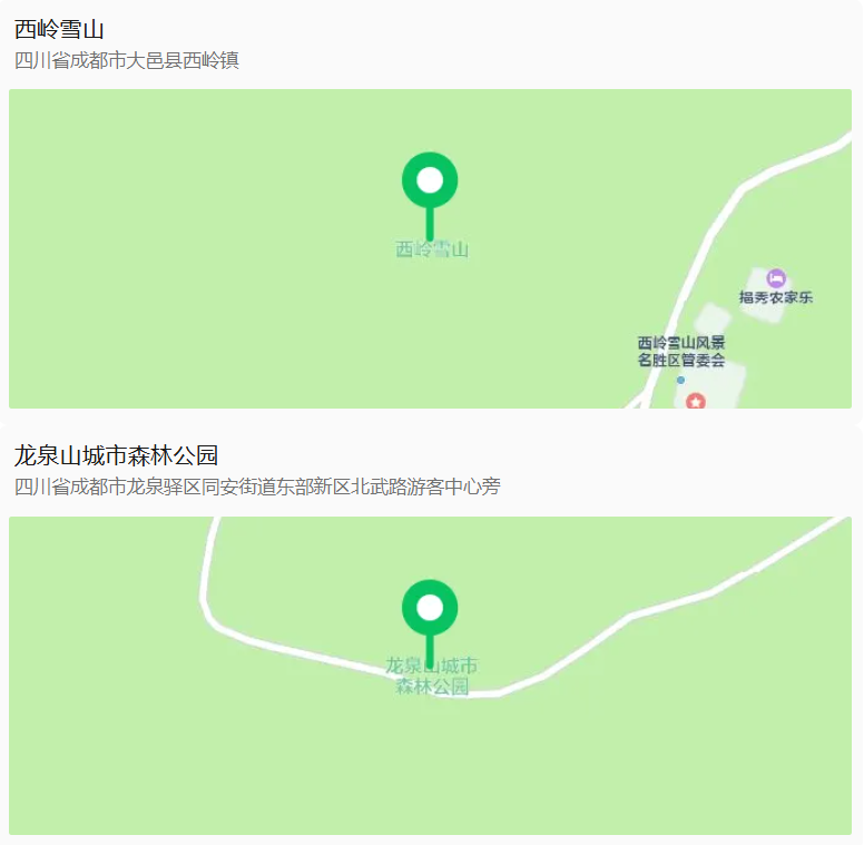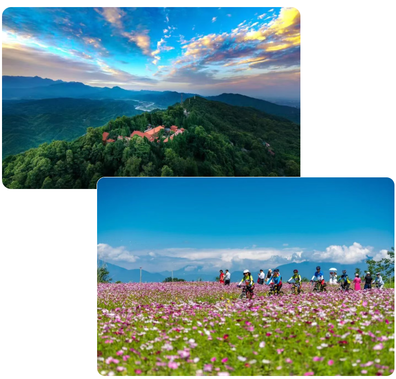 Jintang Mountain, Dujiangyan Scenic Area, Bailuwan Wetland, Xiling Snow Mountain, Longquan Mountain Urban Forest Park, and other attractions are featured.