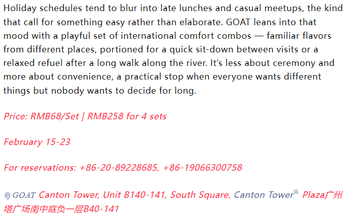 Intercontinental Combos at GOAT