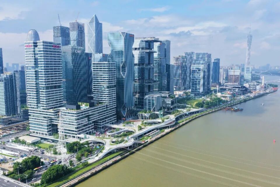 The 500-meter-long "ribbon bridge", officially named the Pazhou West Bank Three-Dimensional Pedestrian Corridor, stretches across Yuejiang West Road, creating a direct link between office buildings housing major tech firms like Tencent and Alibaba and the waterfront.