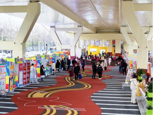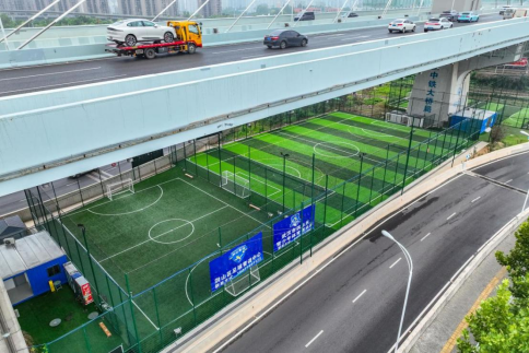 A hive of activity under the Huangpu Avenue Overpass in Wuhan. In recent years, Wuhan has adopted a bridge-specific strategy to renovate numerous under-bridge spaces, transforming these idle corners into multi-functional hubs for eco-recreation, sports and fitness, and community services. Fueled by the warmth of the “under-bridge economy,” the city has solidified the foundation of its residents’ happiness and well-being.