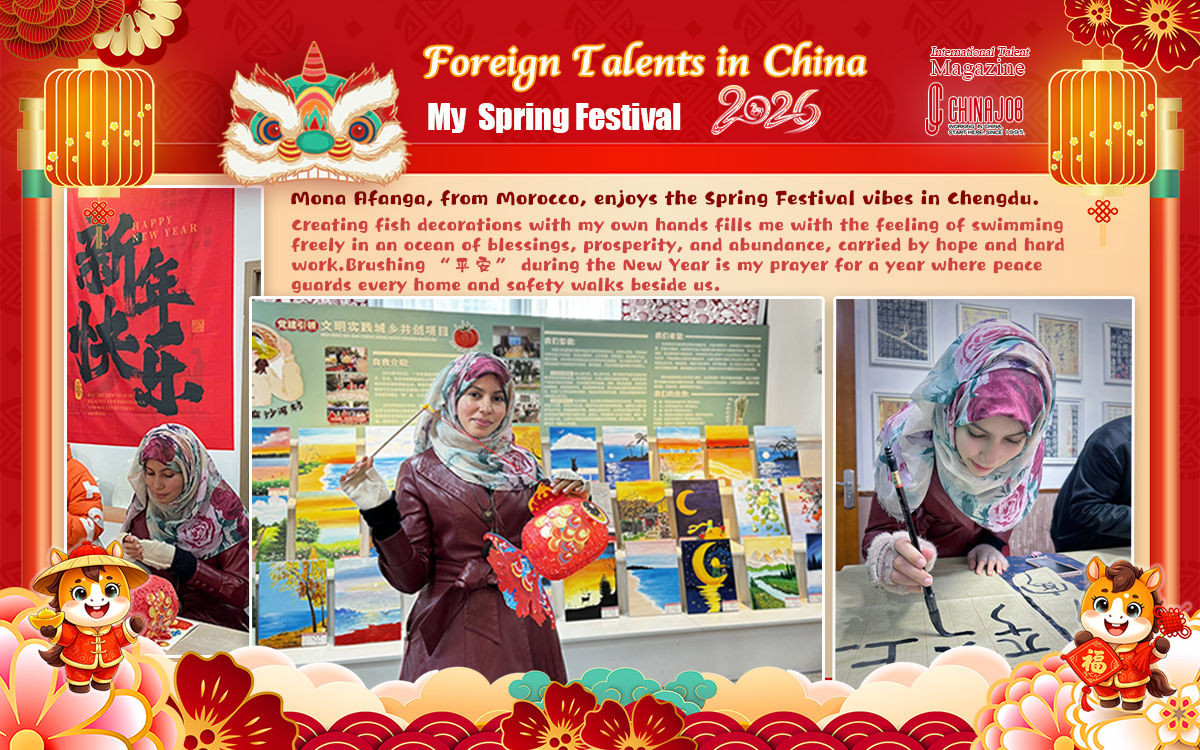 Mona Afanga, from Morocco, enjoys the Spring Festival vibes in Chengdu.