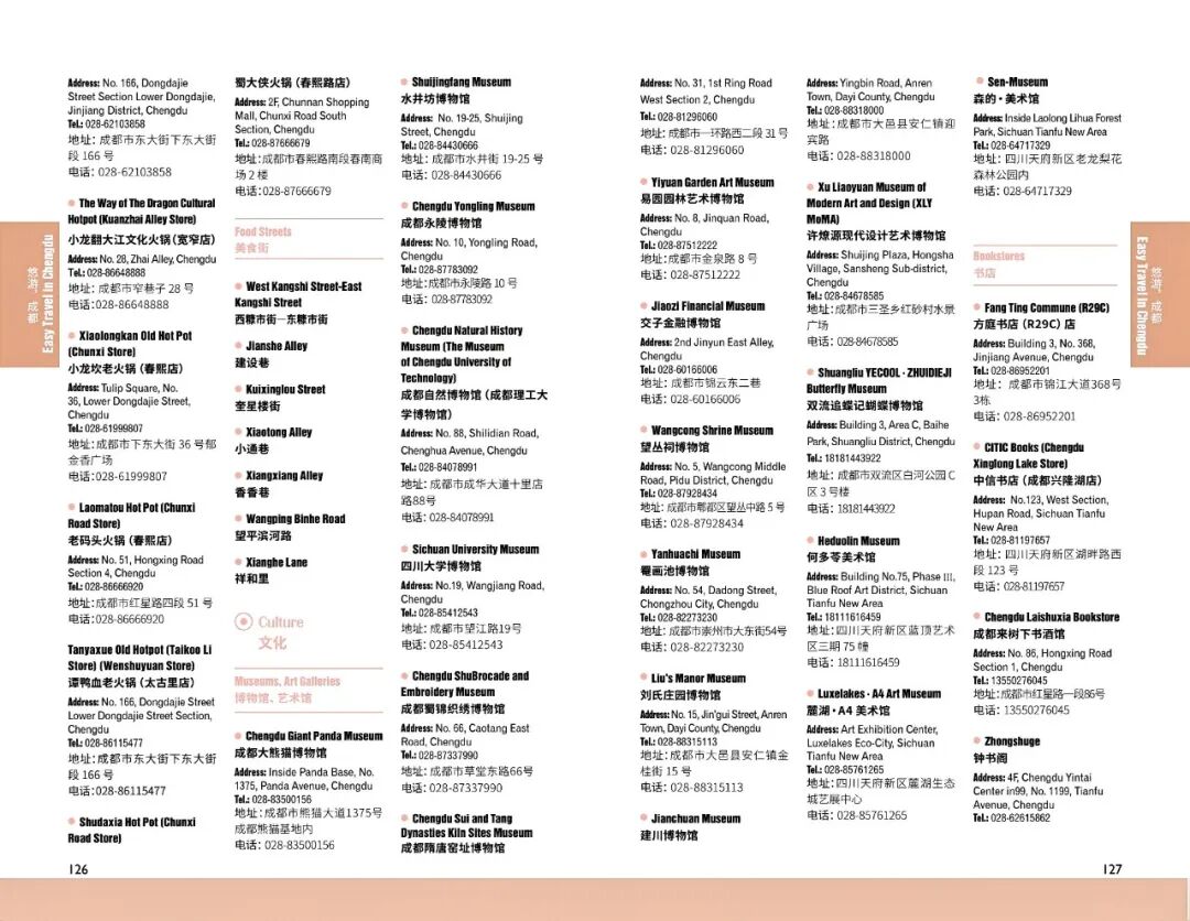 3. More tourist attractions, museums, art galleries, and performance venues are included to provide a thorough guide for easy travel in Chengdu.