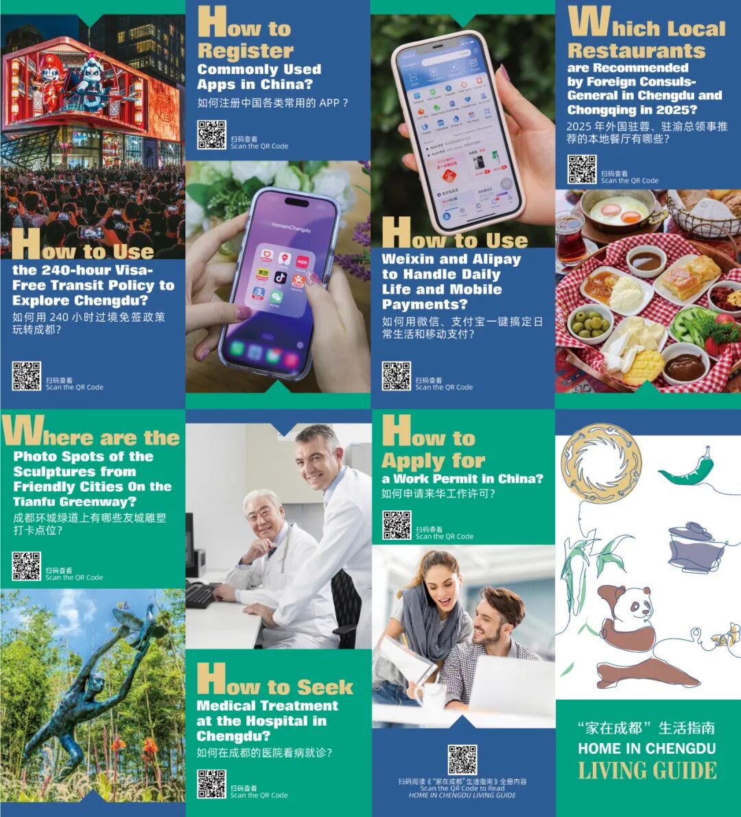 The 2025 new edition of the Guide is now available online on the “Home in Chengdu” section of the Foreign Affairs Office’s official website, the “HomeinChengdu” WeChat Official Account, the “Chengdu Discovery” WeChat Official Account, and the “HELLO Chengdu” WeChat Official Account. The accompanying brochure introduced along with the Guide has been updated accordingly.