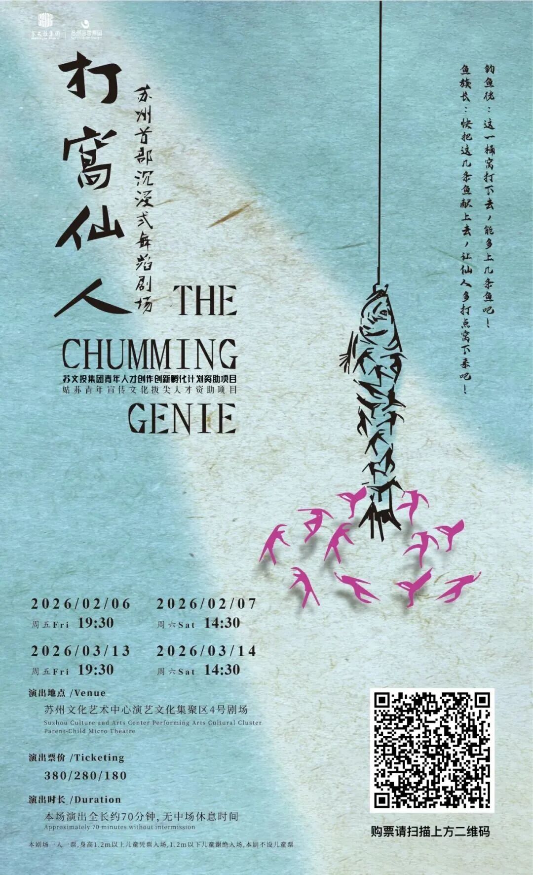 Time: 7:30 p.m., March 13; 2:30 p.m., March 14Venue: No.4 Theatre, Suyi Show Zone苏艺演艺文化集聚区-4号亲子微剧场Tickets: 380/280/180 yuanOn a drowsy afternoon, a girl drifts into sleep by the lakeside. Suddenly, she seems to turn and fall into the water, setting off on a dreamlike adventure.Scan the QR code to buy tickets