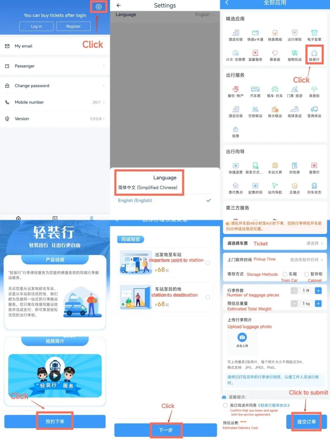 During the pilot phase, the “Travel Light” service is charged per item. The rates are RMB 68 per item from the departure point to the station or from the station to the destination, and RMB 98 per item from the departure point to the train platform or from the platform to the destination. Following the pilot phase, pricing may be adjusted in the future based on market demand, operating costs, and other factors. For business-class passengers, luggage can be delivered to the business-class lounge at six designated stations at a price of RMB 98 per item—Beijingxi, Beijingnan, Guangzhounan, Shanghai, Shanghai Hongqiao, and Hangzhoudong Railway Stations.