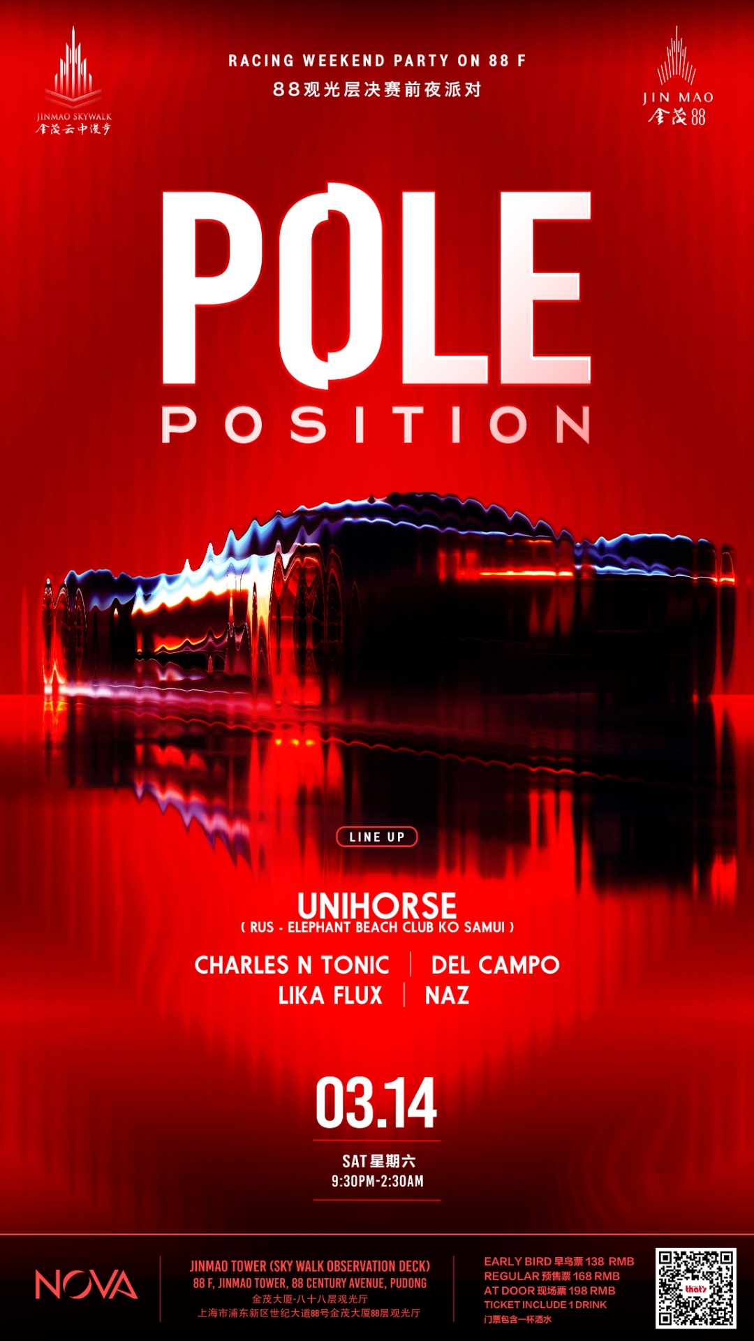 For the first time ever in Shanghai, POLE POSITION takes racing weekend celebrations to extraordinary new heights at the iconic Jinmao Tower Observation Deck – Skywalk.