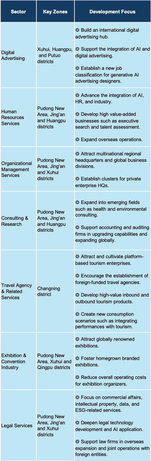 Integrating professional service talent into Shanghai's high-level talent support system with support in immigration, healthcare, and related services.