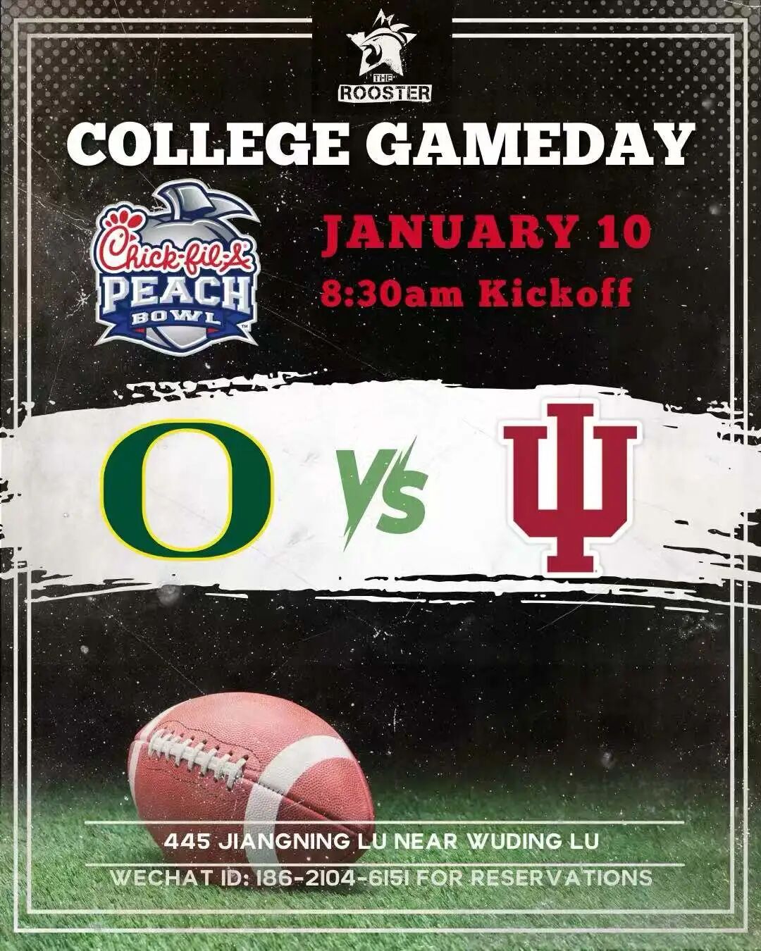 The Rooster will be open Saturday and Sunday morning for the College Football Playoffs, screened live with full sound. Kitchen and bar will be open.