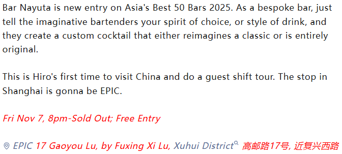 Bar Nayuta Hiro Guest Shift @ EPIC