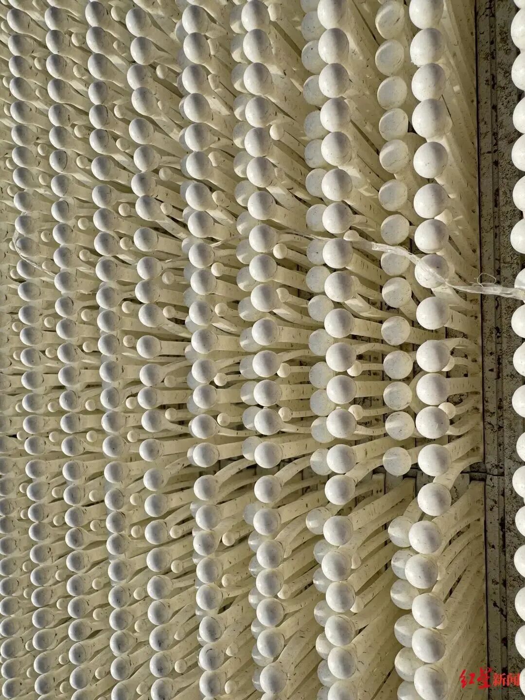 Walking on the slope carpeted with over 100 million “enoki mushrooms”, skiers can feel the same texture and hear the familiar squeak underfoot as if they were walking on real snow.