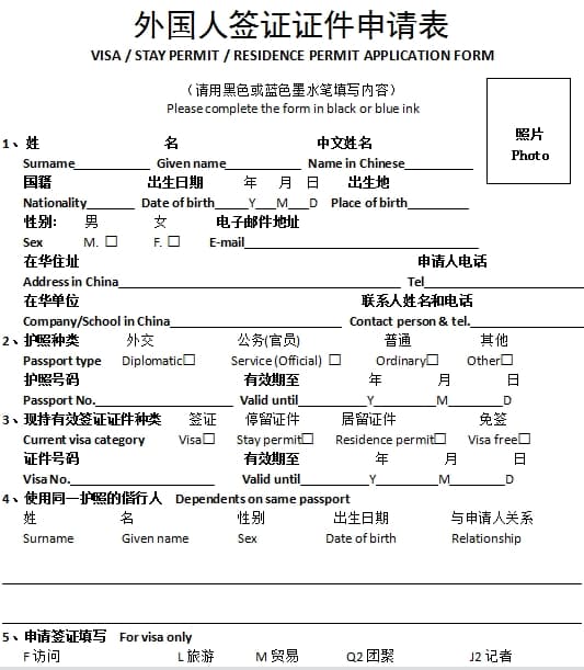 2. A completed Visa/Stay Permit/Residence Permit Application Form and a photo meeting the requirements outlined in the Guidelines for Travel Documents' Photographs;