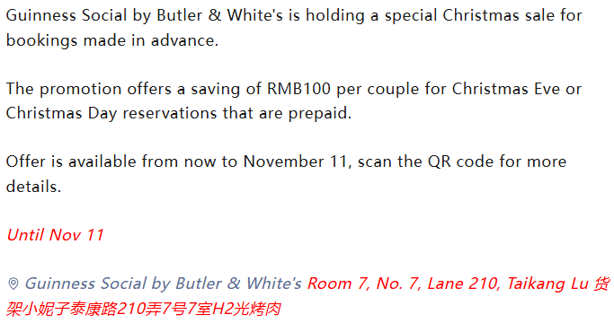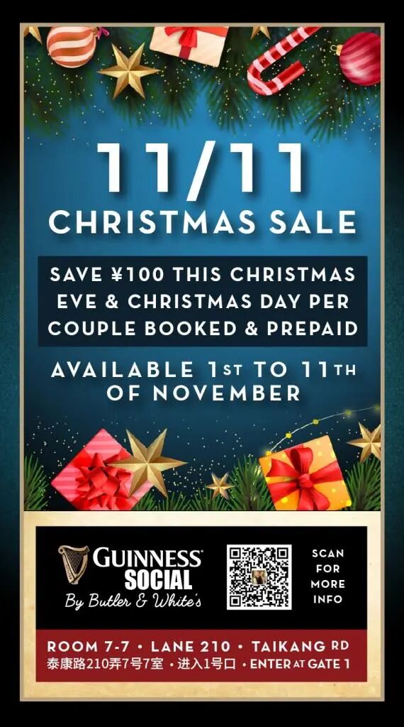 11/11 Christmas Sale @ Guinness Social