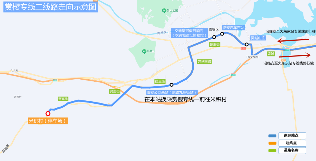 Note: Passengers who purchase the 17 yuan shuttle ticket can transfer for free to the Lin’an Square Station B Exit → Miji Village shuttle to reach the cherry blossom area.