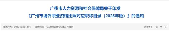 The Guangzhou Municipal Human Resources and Social Security Bureau has recently issued the Catalogue of Overseas Professional Qualifications Corresponding to Chinese Professional Titles in Guangzhou (...